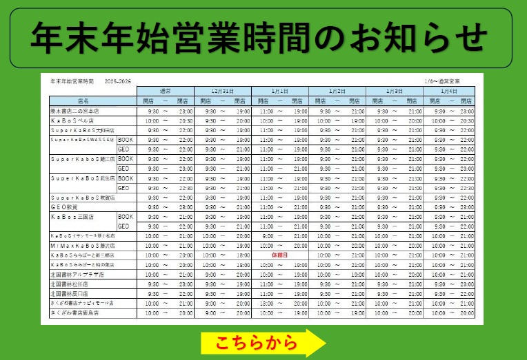 年末年始営業時間のお知らせ